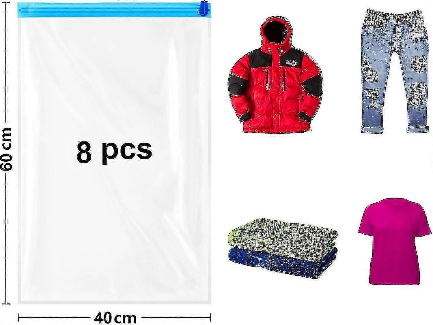 Roll Up Compression Bags, 8 Pack 60x40cm Reusable Vacuum Storage Bags For Travel, Saving Space In Suitcase