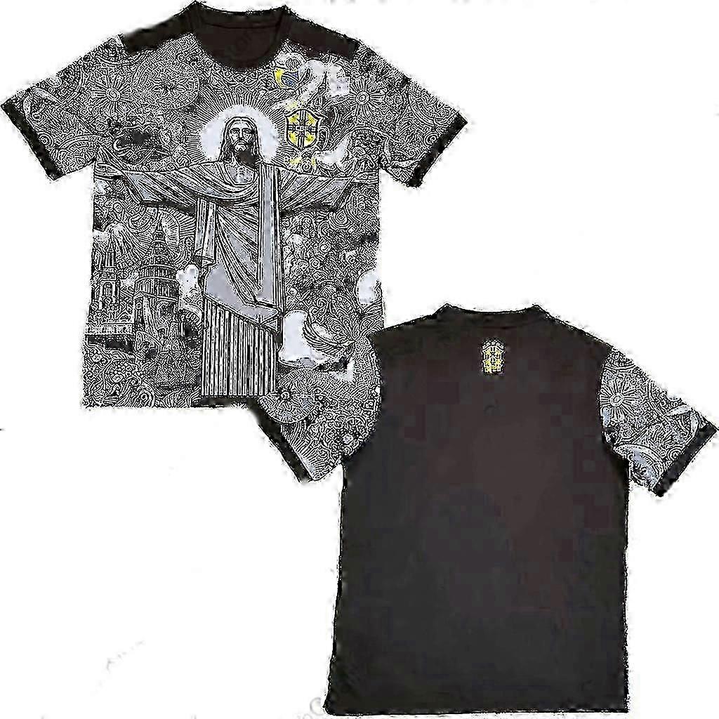 Summer Football Training Top Brazil Special Edition Jesus Black Grey Football Jersey Adult Children Outdoor Quick-drying Top 6XL