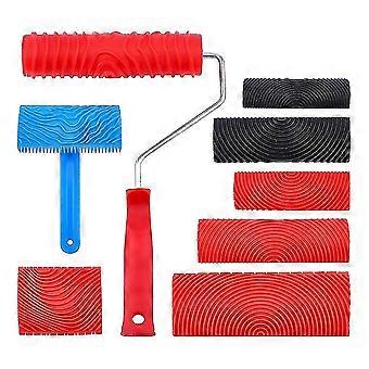 Rubber Imitation Wood Grain Pattern Paint Roller DIY Paint Texture Pigment Printing Wall Painting Roller with Handle