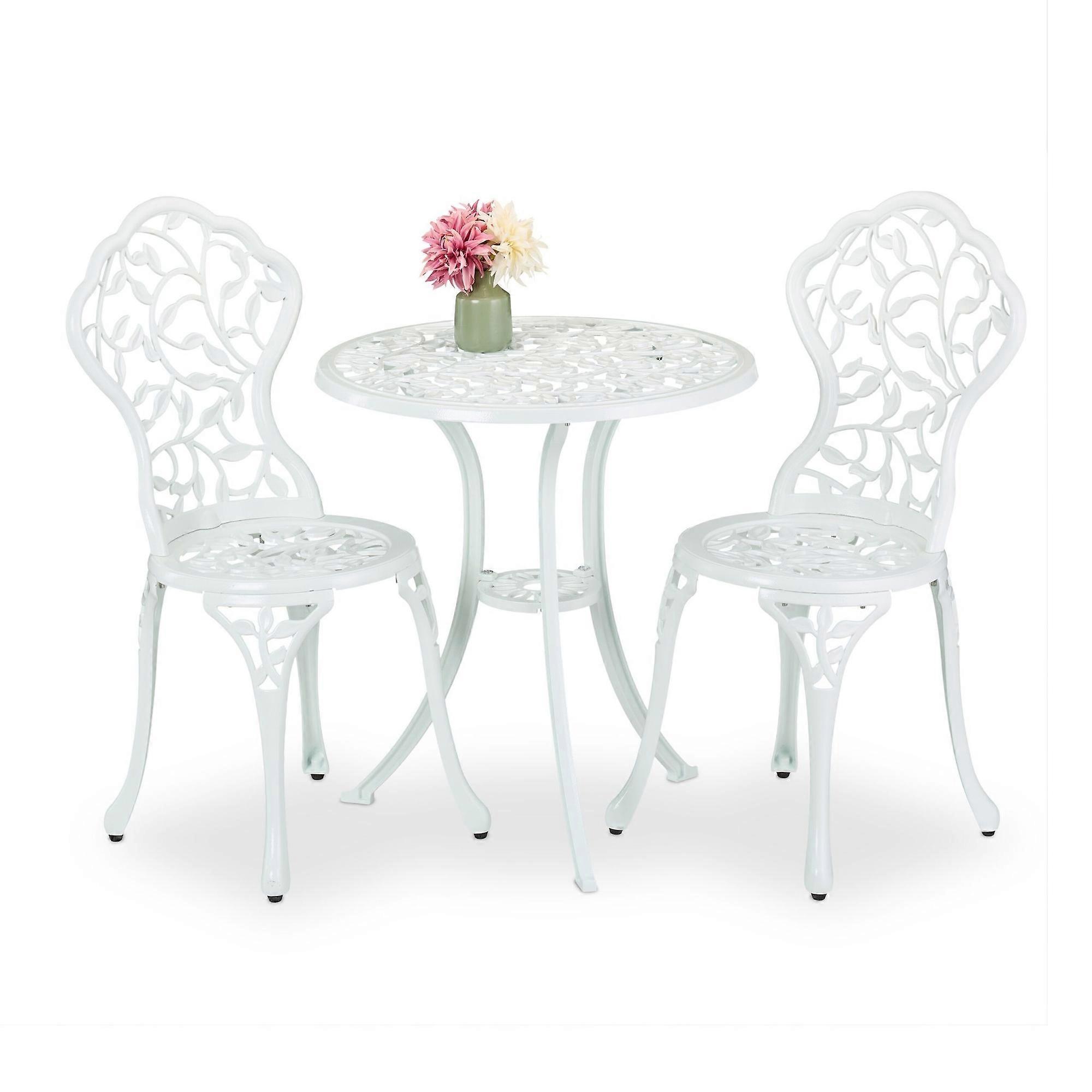 Vitt metallbistroset – bord och 2 stolar, lövmönster