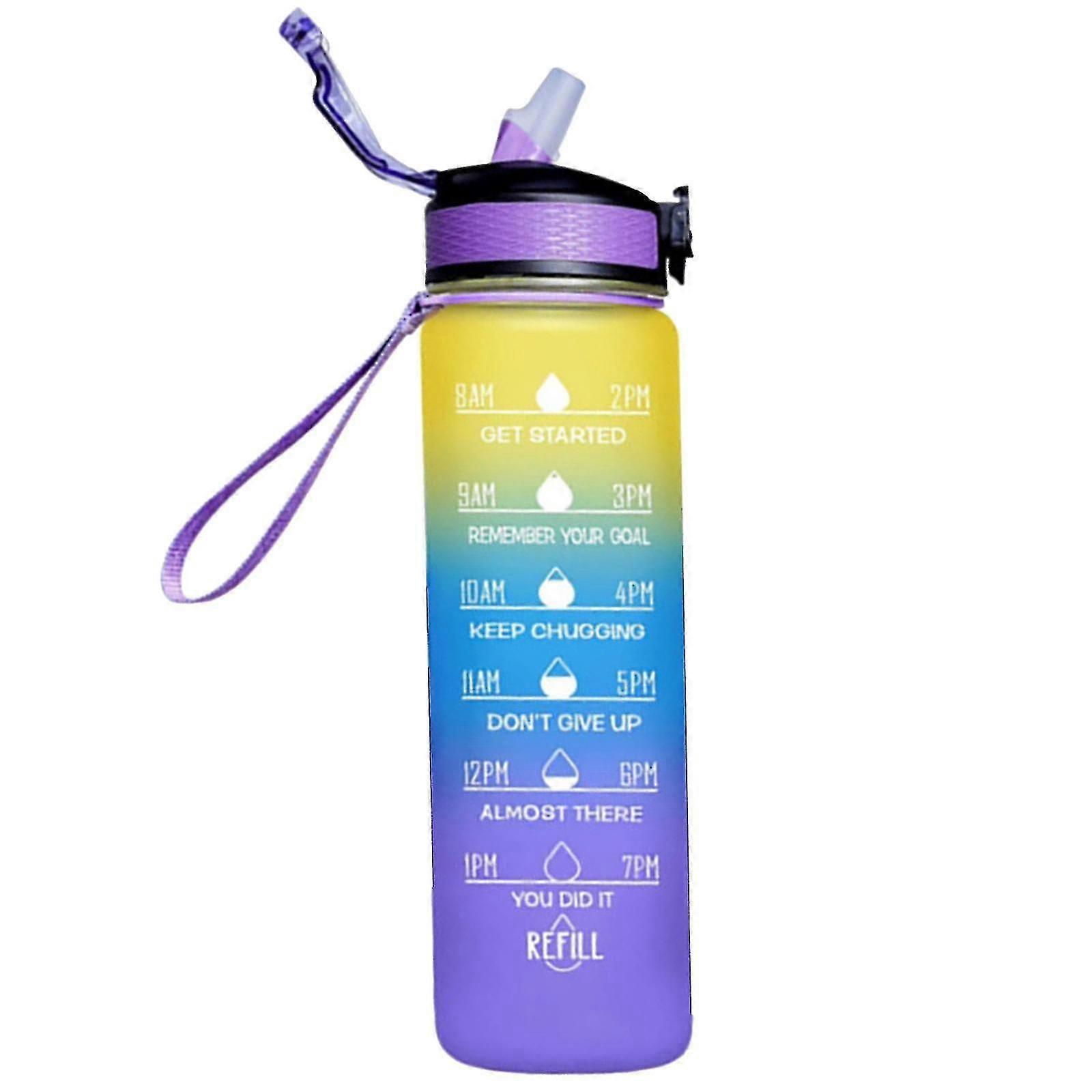 1000ml Free Motivational With Time Marker Fitness Jugs Gradient Color Cups Outdoor Frosted Water Bottle
