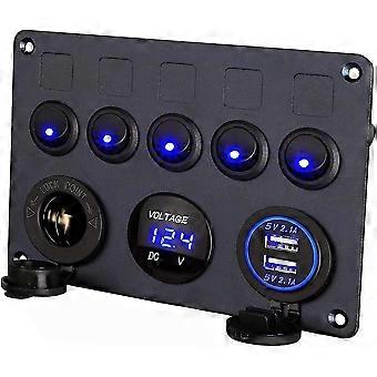 12v / 24v Control Panel, 5 Groups Of Rocker Switch Panels, With 5v 4.2a Dual Usb Charger, Waterproof Led Voltmeter