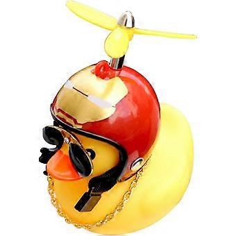 2 PackRubber Duck Toy Ornaments Yellow Duck Car Dashboard Decorations Squeeze Duck Bicycle Horns Propeller Helmet