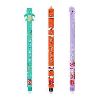 3支卡通凝胶笔0.35mm针尖可擦除凝胶笔快干凝胶笔,适用于学生成人写作日记