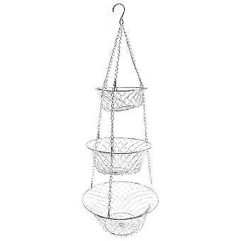 3 Tier Fruit, Vegetable Kitchen Storage Basket Hanging Basket(Silver)