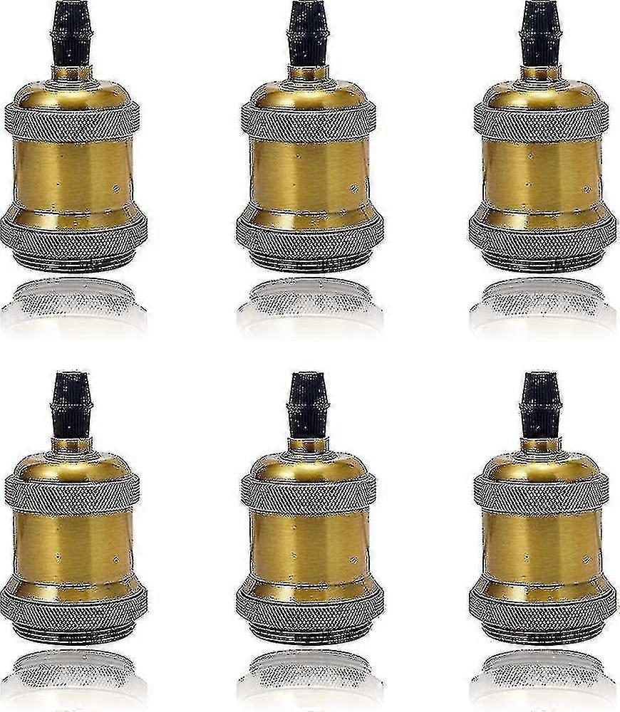6 Pack E27 Vintage Light Bulb Solid Ceramic Socket Lamp Holder Retro Edison Screw Light Bulb Adapter Socket, Antique Brass