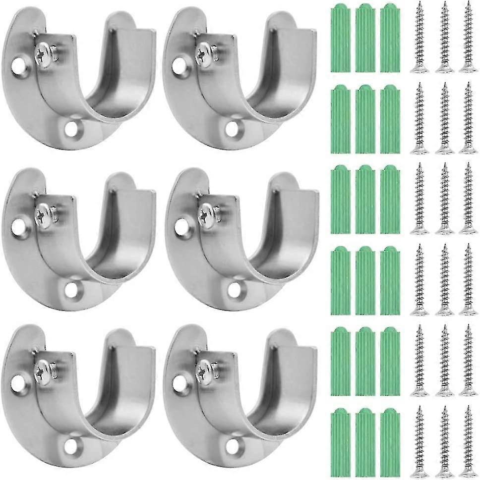 6 Pieces Curtain Rod Holder Curtain Bracket Stainless Steel Closet Rod Holder Closet Rod Support Bar Holder With Screws, For Shower Curtain Cabinet Ro
