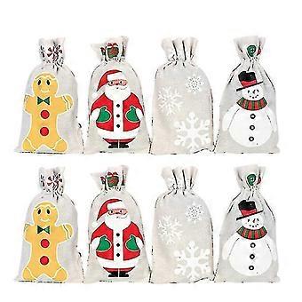 8pcs Christmas Gift Drawstring Bag Linen Bundle Pockets Party Storage Bag (random Style)