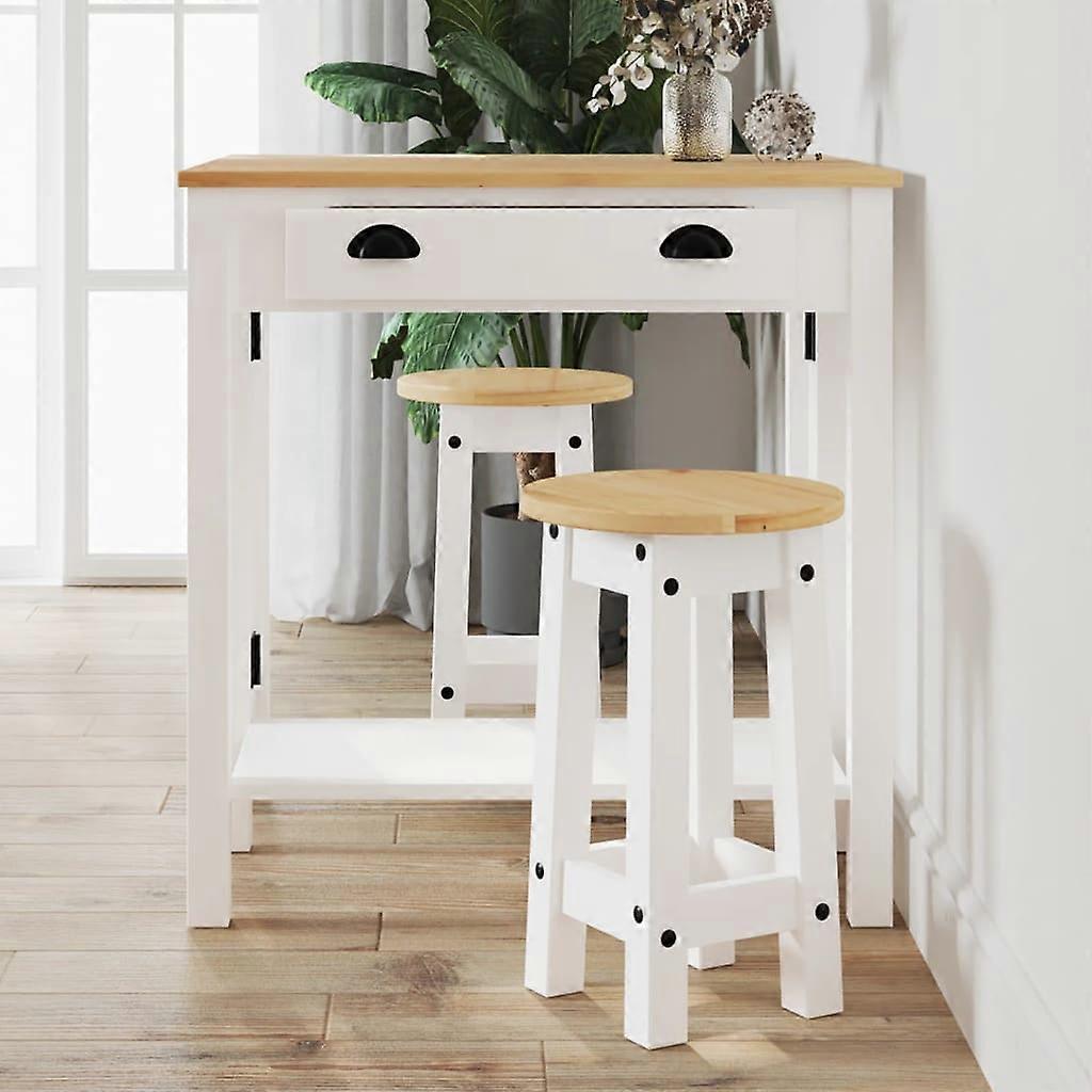 Barhocker 2 Stk. Weiß Massivholz Kiefer