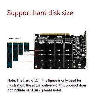 1. 4*32Gbps signal, expanded simultaneously 2. The motherboard supports PCI-E split or PCI-ERAID function, and supports PCI-E36, 4.0 transmission protocol 3. Four disks correspond to four LED indicators. The LED light up only when the SSD is connected. The SSD read and write LED can flash. 4. Compatible with multiple systems, compatible with a variety of mainstream operating systems, driver-free installation, just plug it in and use it 5. Except for Win8/10 system, which is driver-free, other systems need to install drivers for use. Model:NVME Protocol Disk Array Card Note:Different Batches May Have Differences In Product Appearance, Color, And Printed Characters, Which Not Affect The Use. Colour:As Shown Material:PCB Package Contents: 1 * Hard Disk Expansion Card 1 Set * Screw Installation Tools Only the above package content, other products are not included. Note: Light reflection and different displays may cause the color of the item in the picture a little different from the real thing. The measurement allowed error is +/- 1-3cm.