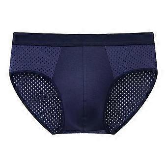 Men Briefs Mid-rise Elastic Waist Panties Holes Ultra-thin Underwear Solid Color Breathable U-convex Traceless Briefs