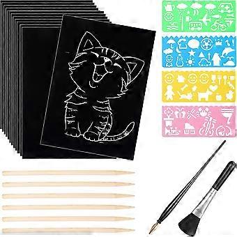 Scratch Paper Art Set 50 Sheets 7.8x11.2 in Black Coated Scratchboard Paper Scratch Paper for Kids