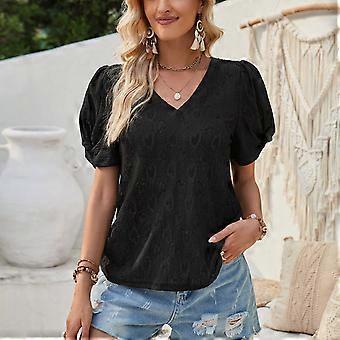 Women Open Front Coat Half Sleeve Dots Jacquard Casual Jacket Black M