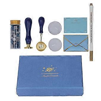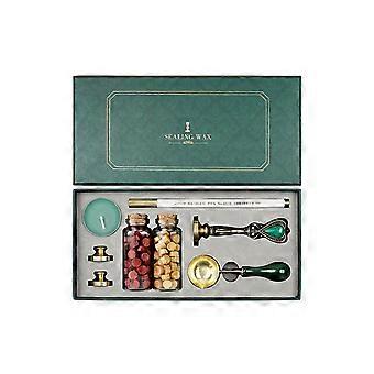 Wax Seal Kit with 2 Beads Bottles, Spoon, Stamp, Candle & Pen