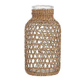 Rustic Straw Woven Vase for Flower Arrangement 2Pcs Glass Plant Pot