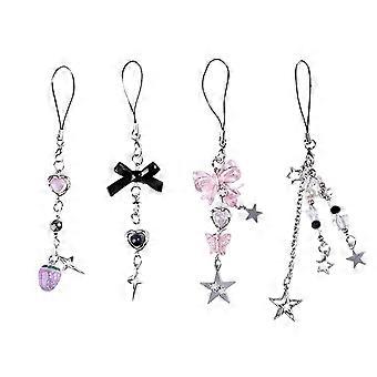 Set of 4 Cute Card Chain Mobile Phone Dangle Unique Keyring Stylish Phone Decorations Suitable for Various Occasion